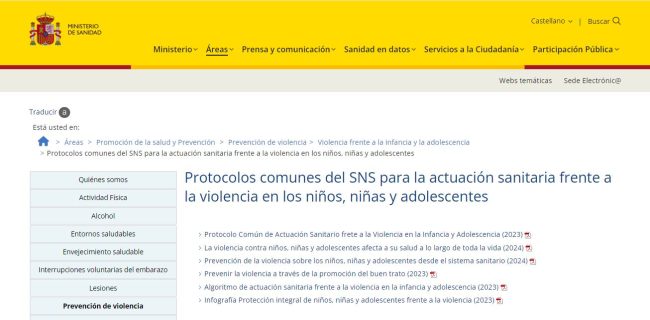 Al fin ya está disponible en la web de Ministerio el Protocolo común de actuación sanitaria frente a la violencia en la infancia y la adolescencia así como el Algoritmo de actuación sanitaria y algunas infografías relacionadas. https://www.sanidad.gob.es/areas/promocionPrevencion/prevencionViolencia/infanciaAdolescencia/protocolos_CoViNNA.htm